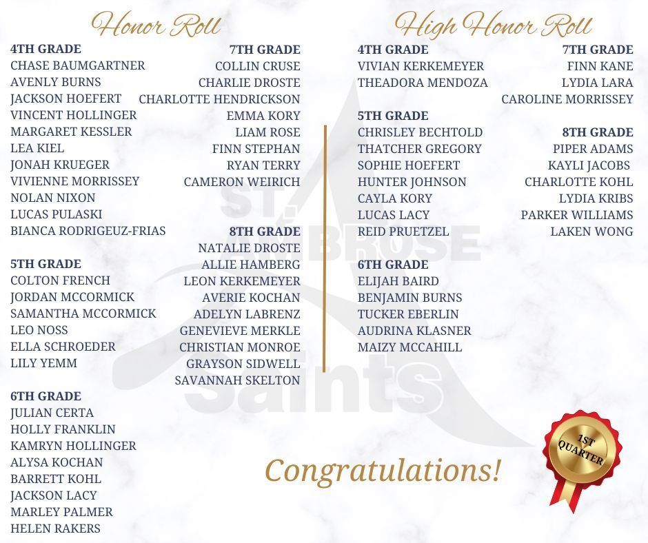 2025-2026 FIRST QUARTER HONOR ROLL